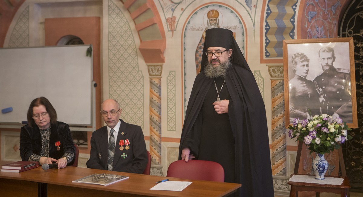 Затем в храме Святителя Николая благочинный Новоспасского монастыря иеромонах Павел (Гелястанов) открыл презентацию издания доктора филологических наук В.И. Мельника «Летопись жизни Великого князя Сергея Александровича и Великой княгини Елисаветы Феодоровны Романовых».