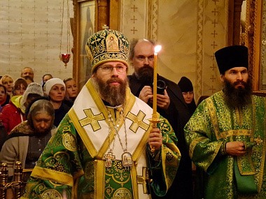 Раннюю Литургию в Амвросиевском приделе Введенского собора возглавил наместник Введенского ставропигиального мужского монастыря Оптина пустынь епископ Можайский Леонид. Его Преосвященству сослужила братия монастыря в священном сане.