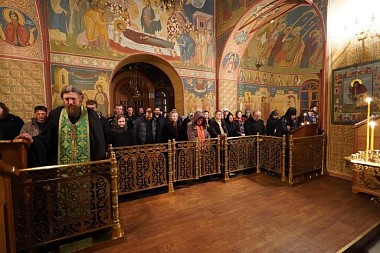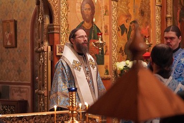 Раннюю Литургию во Владимирском храме, где находится рака с мощами прп. Анатолия, возглавил наместник монастыря епископ Можайский Леонид, викарий Святейшего Патриарха Московского и всея Руси.