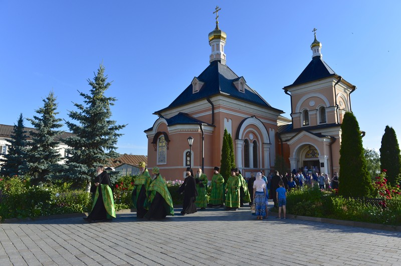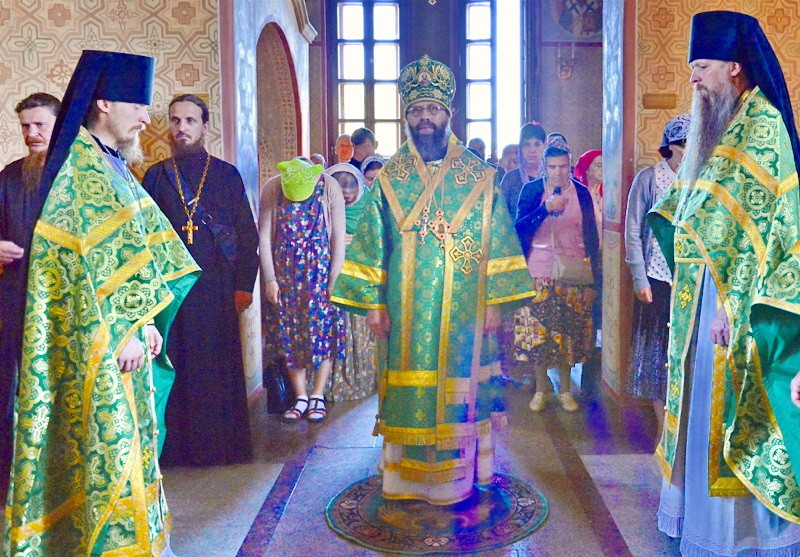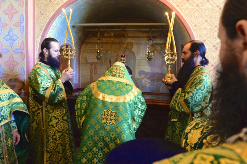 Богослужение возглавил наместник обители епископ Можайский Леонид в сослужении братии в священном сане.