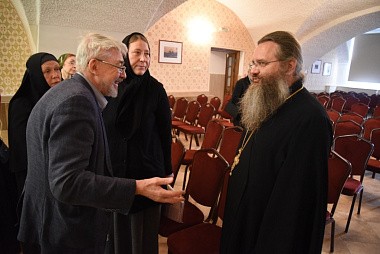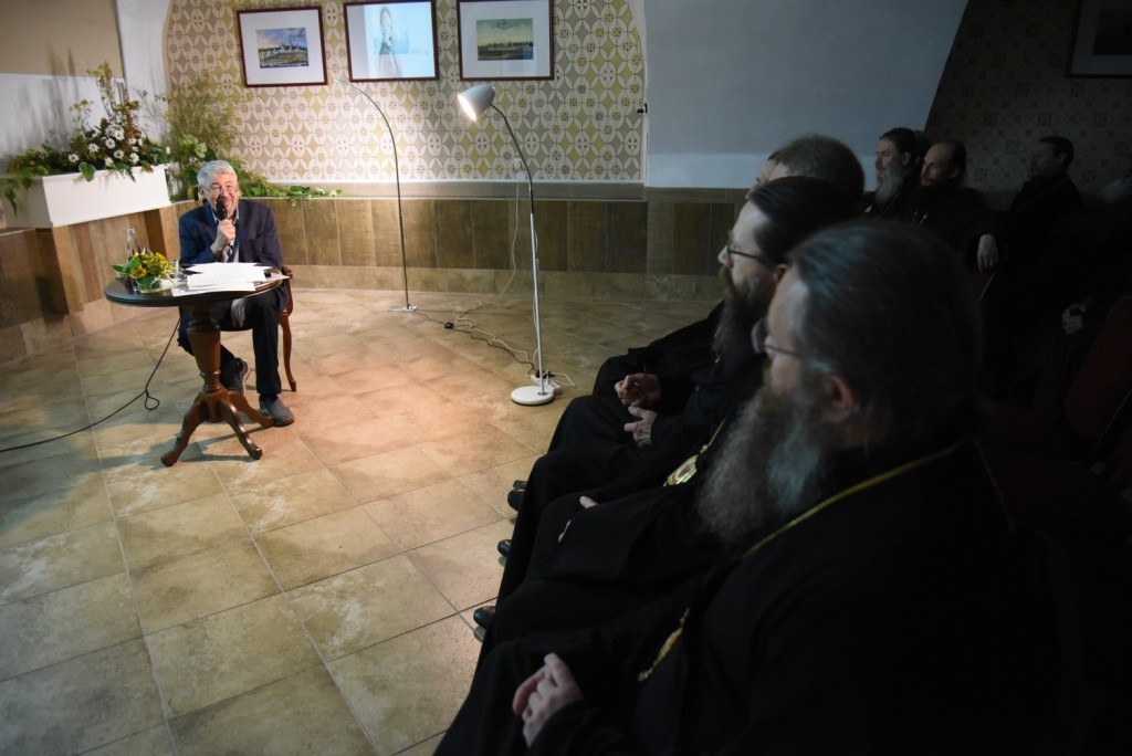 Воропаев кратко поделился воспоминаниями о своих первых посещениях монастыря в 1980-х годах, еще не переданного Церкви, − на его глазах прошла вся новейшая история возрождения Оптиной; как университетский педагог, он привозил в обитель своих студентов, некоторые впоследствии избрали монашеский путь и даже стали игуменами.