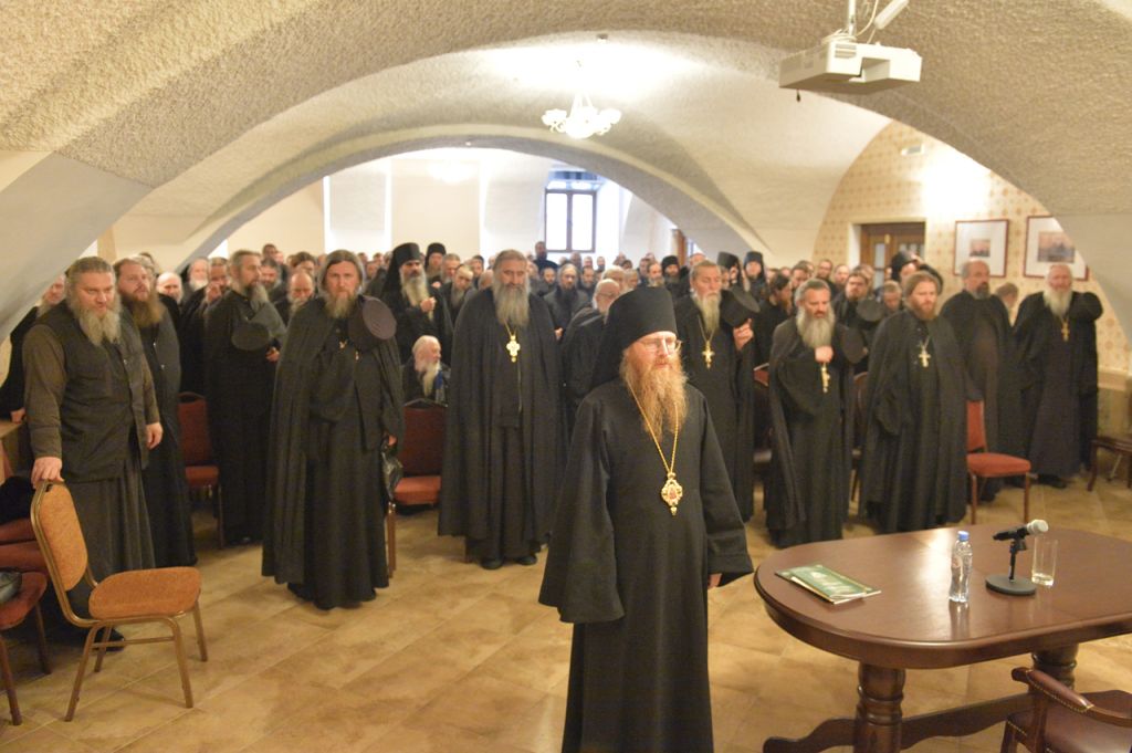 Затем братия задали ряд вопросов, касающихся дисциплинарных и уставных моментов. Наместник обители пояснил необходимость включения в состав ежедневного богослужения повечерия с канонами (оно служится теперь после вечерней трапезы) тем, что это соответствует древним иноческим уставам. Владыка также отметил, что наше непростое время требуют от монашествующих усиления молитвы и поста, ибо кто как не иноки должны молиться за нашу страну и ее народ.