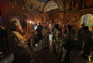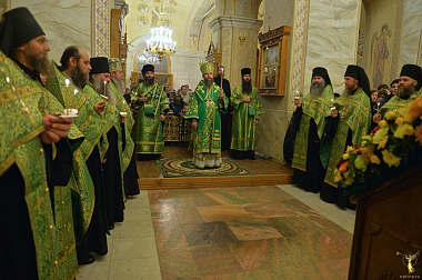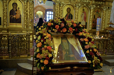 Вечером в этот день в трех храмах обители совершалось всенощное бдение. Богослужения малой вечерни у раки с мощами преподобного и всенощное бдение во Введенском соборе возглавил наместник монастыря Оптина пустынь епископ Можайский Леонид в сослужении братии обители в священном сане.