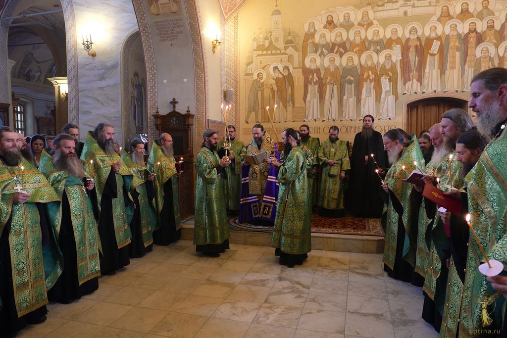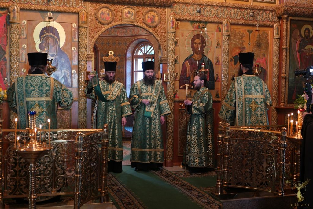 Праздничные богослужения во Владимирском храме Оптиной пустыни возглавил наместник монастыря епископ Можайский Леонид в сослужении настоятеля Московского подворья монастыря Оптина пустынь в Ясеневе, пресс-секретаря Синодального отдела по монастырям и монашеству архимандрита Мелхиседека (Артюхина) и братии в священном сане.