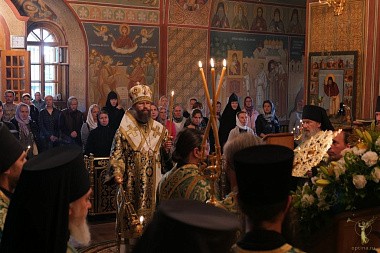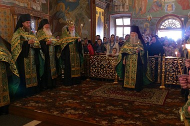 В сам праздничный день Божественная литургии служилась в пяти храмах, включая скитской.