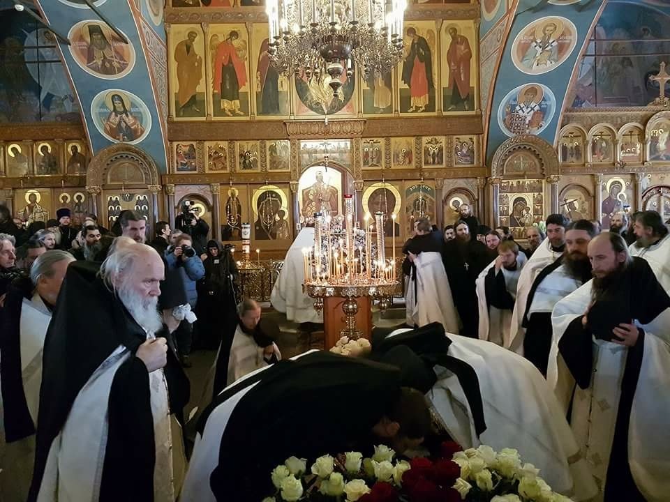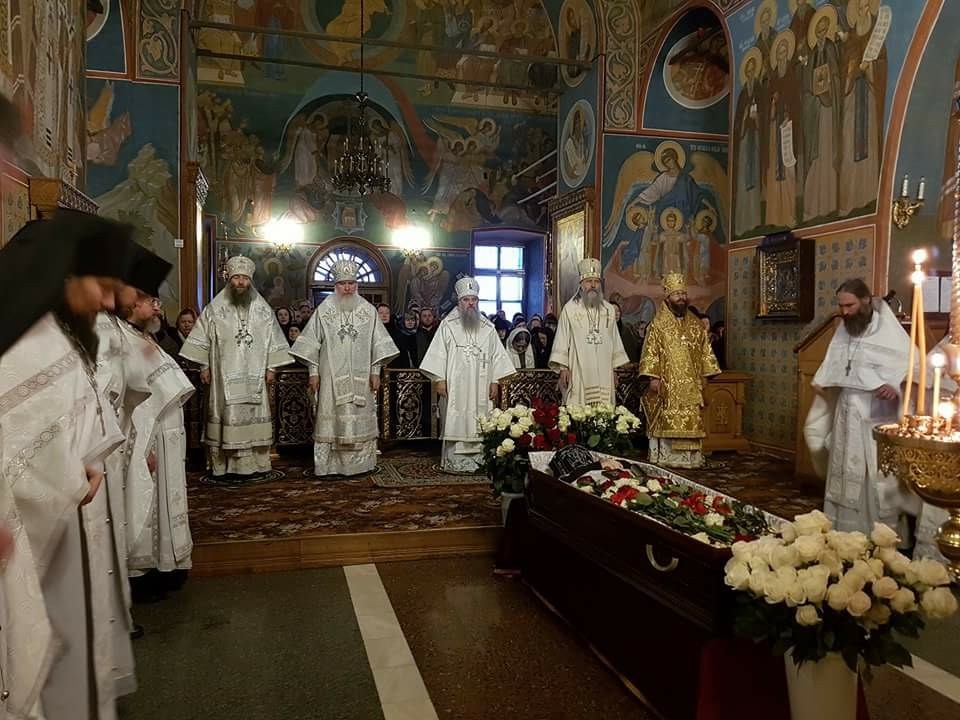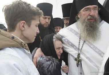 Накануне вечером прибывший в монастырь председатель Синодального отдела по монастырям и монашеству архиепископ Сергиево-Посадский Феогност отслужил заупокойную литию по почившему.