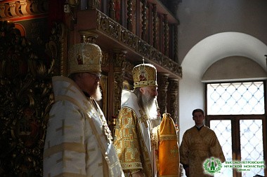 В сам день праздника по благословению Святейшего Патриарха Московского и всея Руси Кирилла Божественную литургию в Сергиевском храме обители совершил председатель Синодального отдела по монастырям и монашеству архиепископ Сергиево-Посадский Феогност.