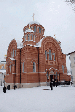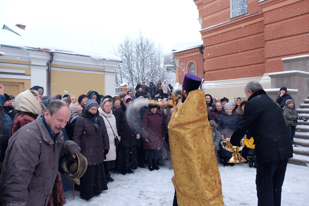 В обители были совершены две Божественных литургии: ранняя в Покровском соборе и поздняя в Никольском соборе монастыря, а также праздничный молебен с крестным ходом.