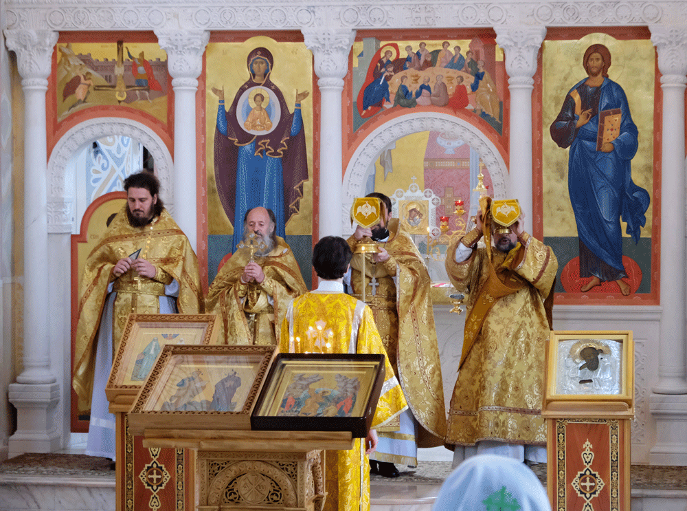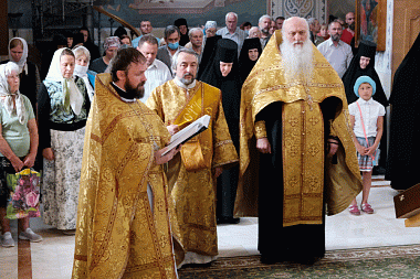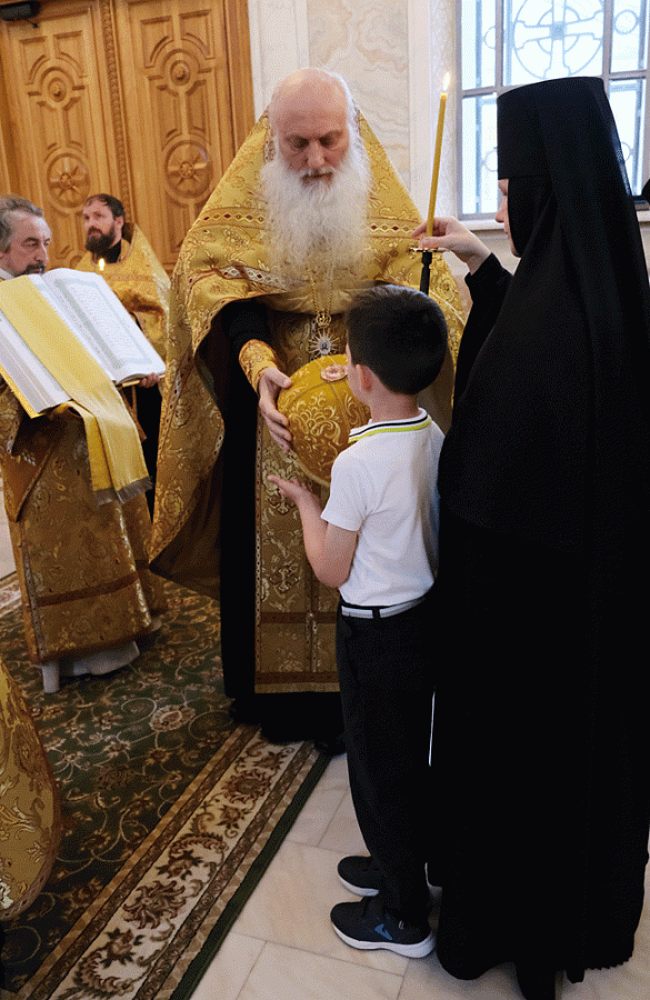 В этот день праздничная Божественная литургия была совершена в приделе святых апостолов Никольского собора обители.