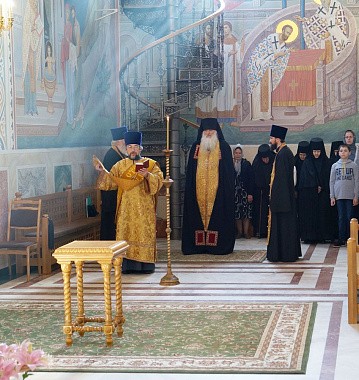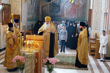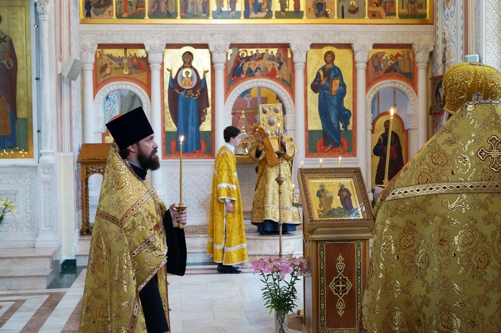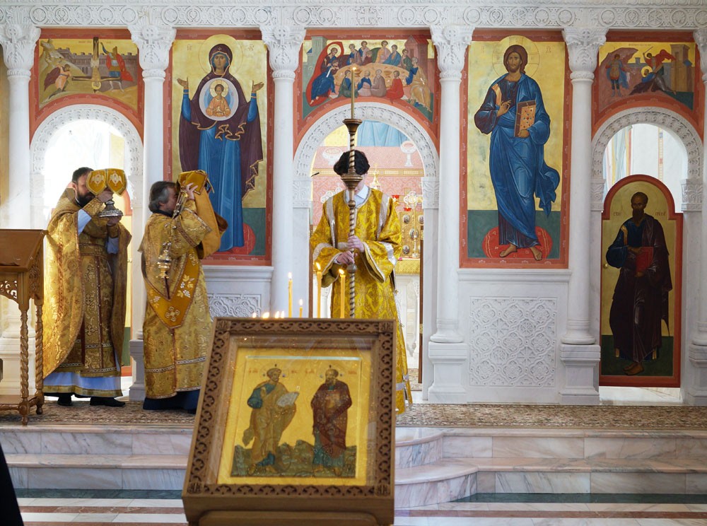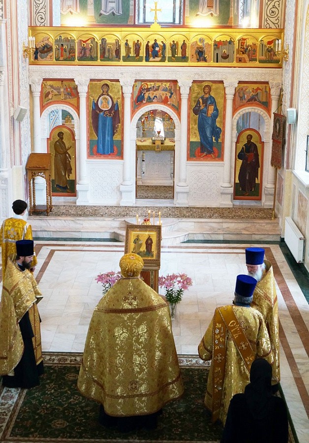 Праздничная Божественная литургия была совершена в Никольском соборе обители в приделе святых апостолов.