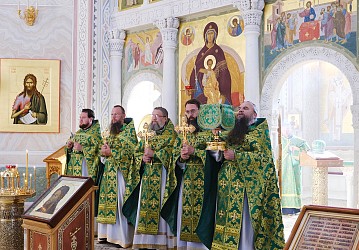 В Никольском соборе обители была совершена Божественная литургия за которой молились братия Свято-Троицкой Сергиевой лавры и духовенство Хотькова монастыря.