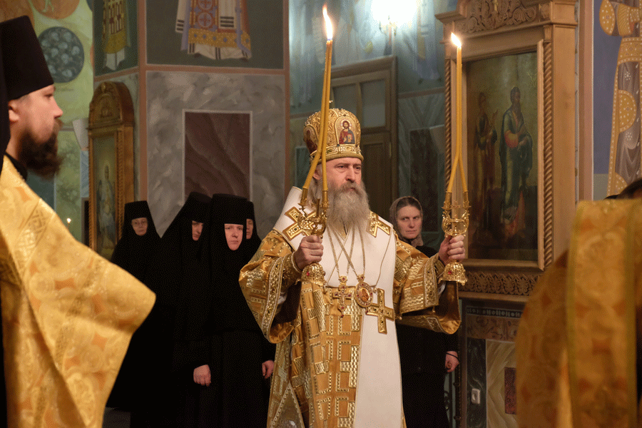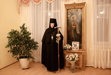 В завершение Его Высокопреосвященство поздравил игумению Олимпиаду с праздником и преподнес в дар икону Пресвятой Богородицы.