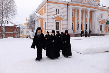 Поздравить игумению Олимпиаду прибыла настоятельница Аносина Борисоглебского ставропигиального женского монастыря игумения Мария (Солодовникова).
