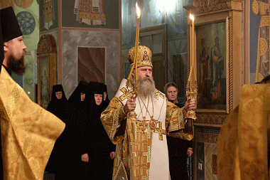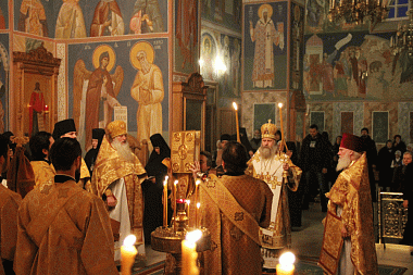 Праздничную Божественную литургию возглавил председатель Синодального отдела по монастырям и монашеству, наместник Троице-Сергиевой лавры архиепископ Сергиево-Посадский Феогност в сослужении духовенства обители.