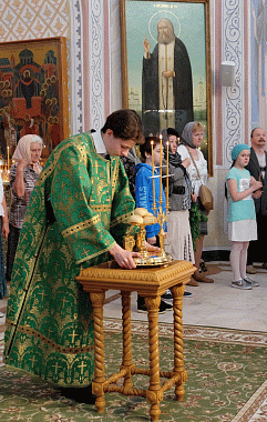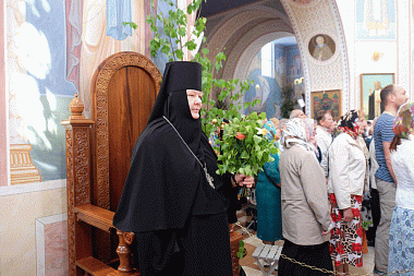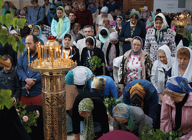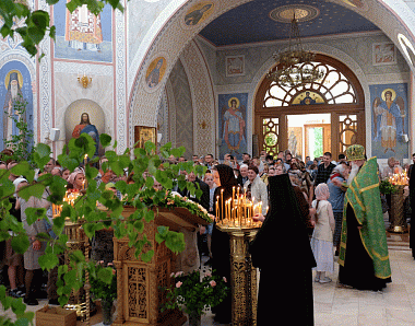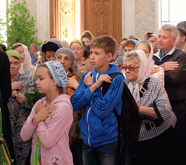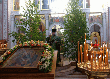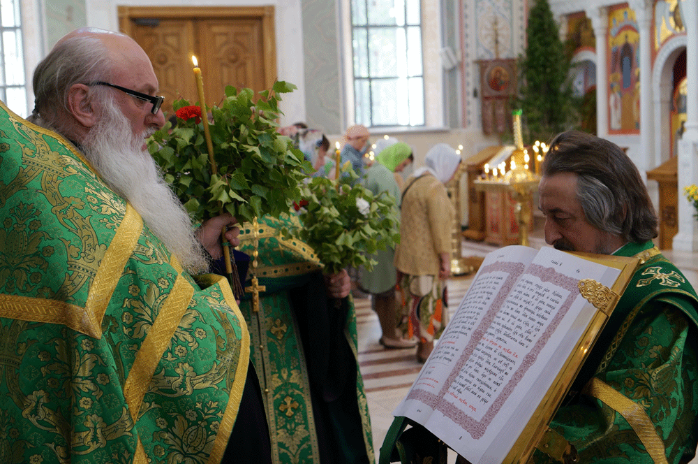 По окончании Литургии на Великой вечерне читались особые коленопреклонные молитвы ко Святой Троице о ниспослании благодати Святого Духа, об очищении грехов и спасении всех. Радостное, благоговейное настроение присутствовало в храме, и солнечный теплый день стал Божиим подарком к Святому празднику.