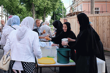 За богослужением молились настоятельница обители игумения Олимпиада (Баранова) с сестрами и воспитанницами монастырского детского пансиона, настоятельница Аносина Борисоглебского ставропигиального женского монастыря игумения Мария (Солодовникова) (бывшая насельница Хотькова монастыря) и гости обители.