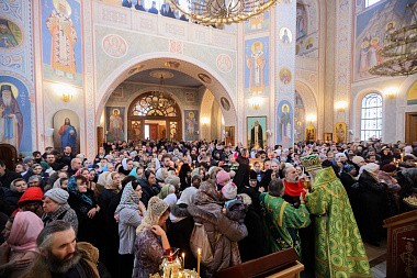 Затем архиерей с сослужившим духовенством совершили славление празднуемым святым, владыка Феогност прочитал им молитву и приложился к их честным мощам, после чего участники богослужения, включая игумению Олимпиаду с сестрами и воспитанницами монастырского приюта, также имели возможность приложиться к святыне.