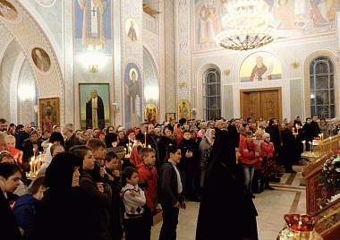 За богослужением молились настоятельница монастыря игумения Олимпиада (Баранова) с сестрами, воспитанницы детского пансиона и ученики Воскресной школы, а также прихожане и гости обители.