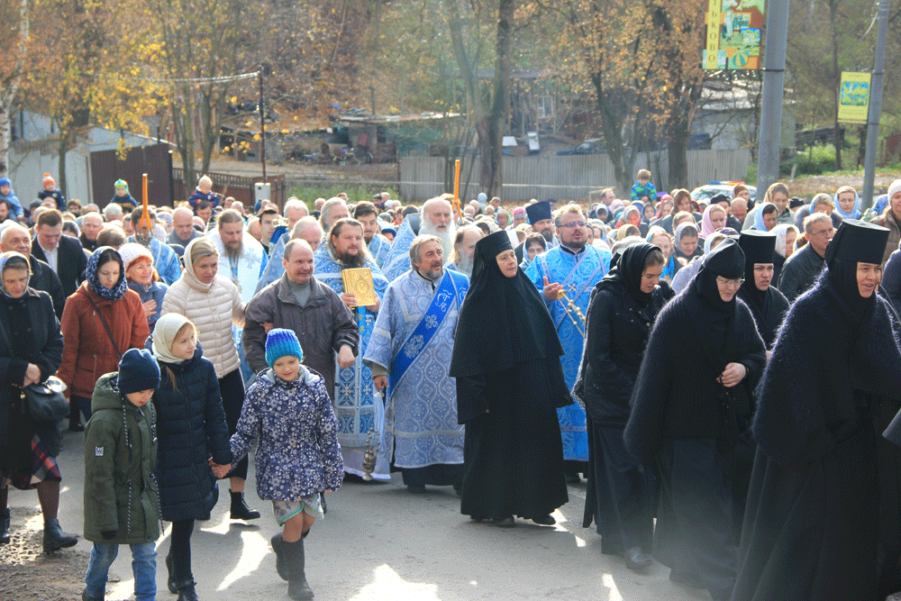 По окончании поздней Божественной литургии по традиции был отслужен молебен с крестным ходом вокруг монастыря. Впервые в истории монастыря Покровский крестный ход возглавили два архиерея, что придало особую торжественность празднику.