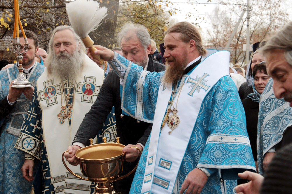 «Ваше Высокопреосвященство, Ваше Высокопреподобие, Преподобия, матушка игумения, сестры, паломники благочестивые! Святейший Патриарх Московский и всея Руси Кирилл просил меня передать свое Патриаршее благословение, поздравление с праздником – днем Покрова Божией Матери.