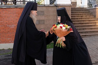 Сегодня в Покровском монастыре, что в городе Хотькове, особое торжество. Святейший Патриарх благодарит вас за ваши святые молитвы, ваши труды, тот мир, который вы несете людям, за ту любовь, которую люди получают здесь, в этом монастыре.