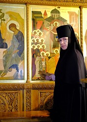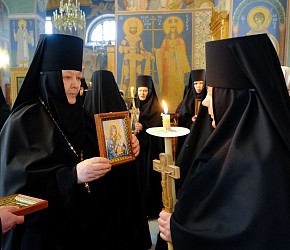 Настоятельница монастыря игумения Олимпиада (Баранова) благословила сестер иконами Пресвятой Богородицы и сказала наставление о монашеском житии.