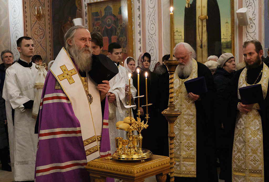 Вечернее богослужение возглавил председатель Синодального отдела по монастырям и монашеству архиепископ Каширский Феогност.
