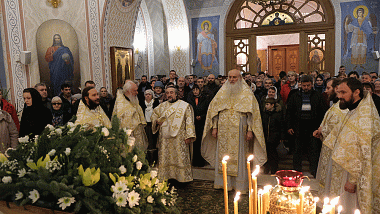 В обители состоялись две Божественные Литургии, ранняя (ночная) и поздняя, при большом стечении молящихся.