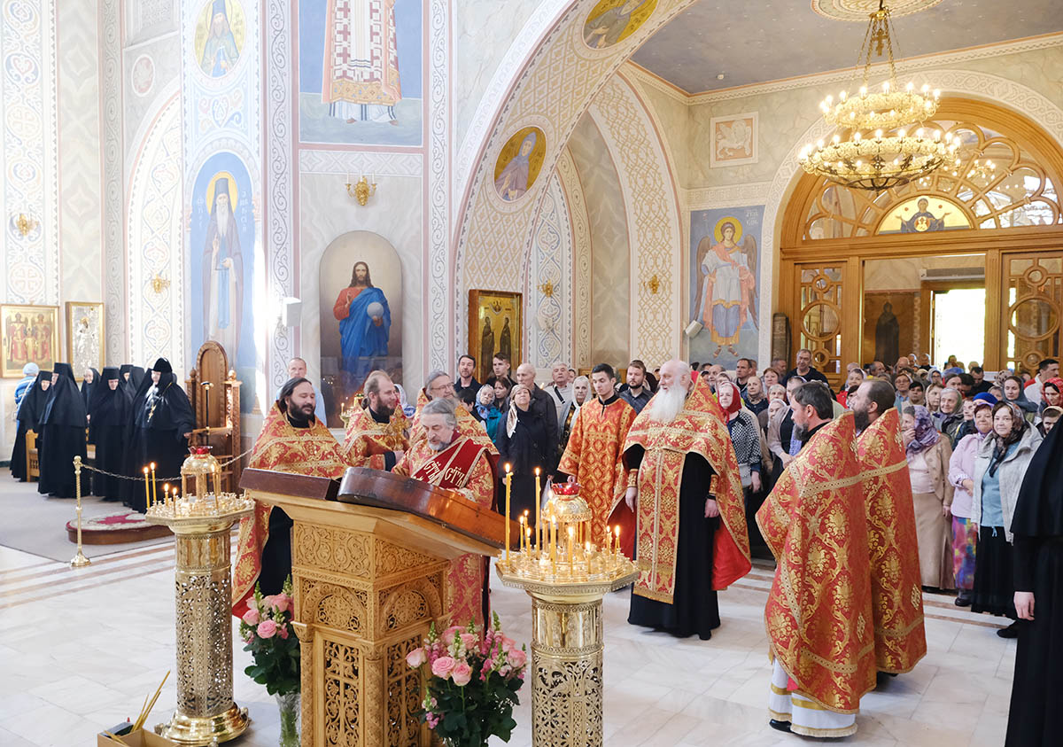 В день праздника в обители были совершены две Божественные Литургии: ранняя – в Покровском соборе и поздняя – в Никольском соборе монастыря.