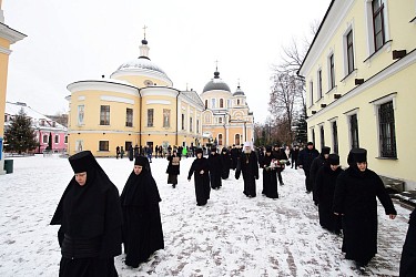 За Литургией молились настоятельница монастыря игумения Феофания (Мискина) с сестрами и воспитанницами монастырского приюта, паломники и прихожане обители.