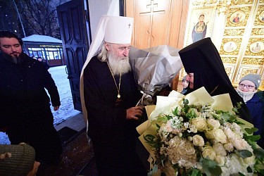 Митрополит Феогност огласил поздравление Святейшего Патриарха Московского и всея Руси Кирилла в адрес игумении Феофании с днем тезоименитства.