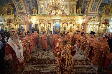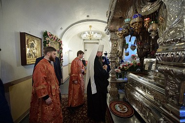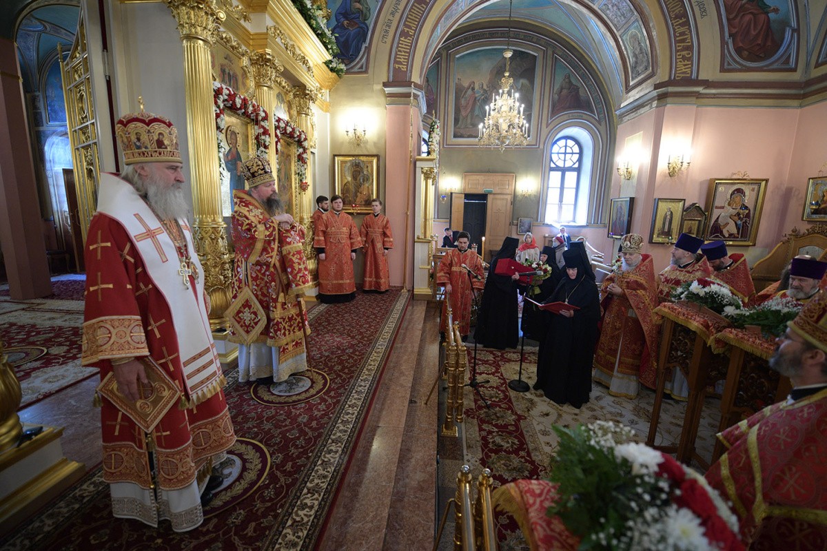 Его Высокопреосвященству сослужили: председатель Синодального отдела по монастырям и монашеству, наместник Донского ставропигиального монастыря митрополит Каширский Феогност, секретарь Патриарха Московского и всея Руси по г. Москве протопресвитер Владимир Диваков, представитель Православной Церкви в Америке в Москве протоиерей Даниил Андреюк, благочинный Покровского округа г. Москвы протоиерей Олег Егоров, руководитель Патриаршей службы протокола протоиерей Андрей Бондаренко, духовенство обители.