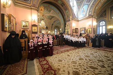 Торжество завершилось трапезой, во время которой воспитанницы монастырского приюта для девочек представили праздничный концерт.