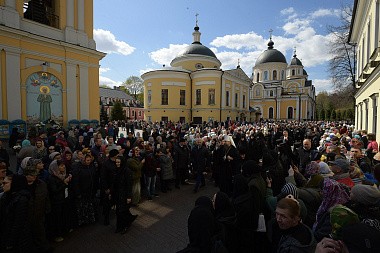 За богослужением молились настоятельница монастыря игумения Феофания (Мискина) с сестрами и воспитанницами детского приюта, многочисленные паломники.