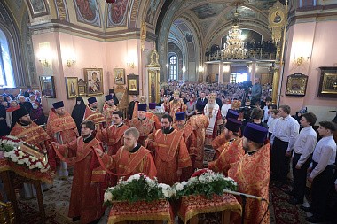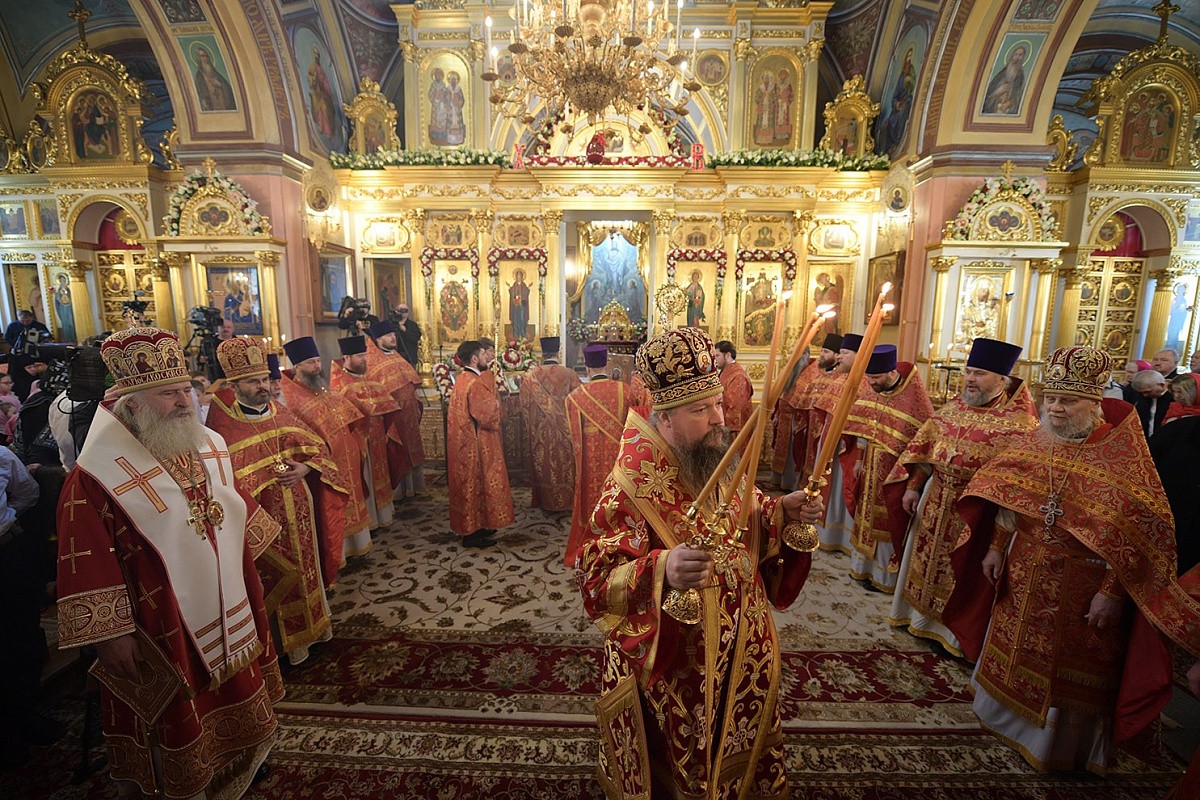 По благословению Святейшего Патриарха Московского и всея Руси Кирилла Божественную литургию в Воскресенском соборе обители возглавил управляющий делами Московской Патриархии, первый викарий Патриарха Московского и всея Руси по г. Москве, наместник Новоспасского ставропигиального монастыря митрополит Воскресенский Дионисий.