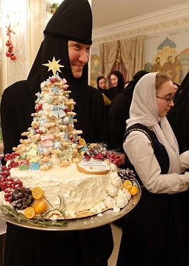 В завершение матушка игумения вручила воспитанницам монастырского приюта и сестрам обители рождественские подарки.