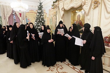 Насельницы обители поздравили настоятельницу монастыря игумению Феофанию (Мискину) с наступившим праздником Рождества Христова.