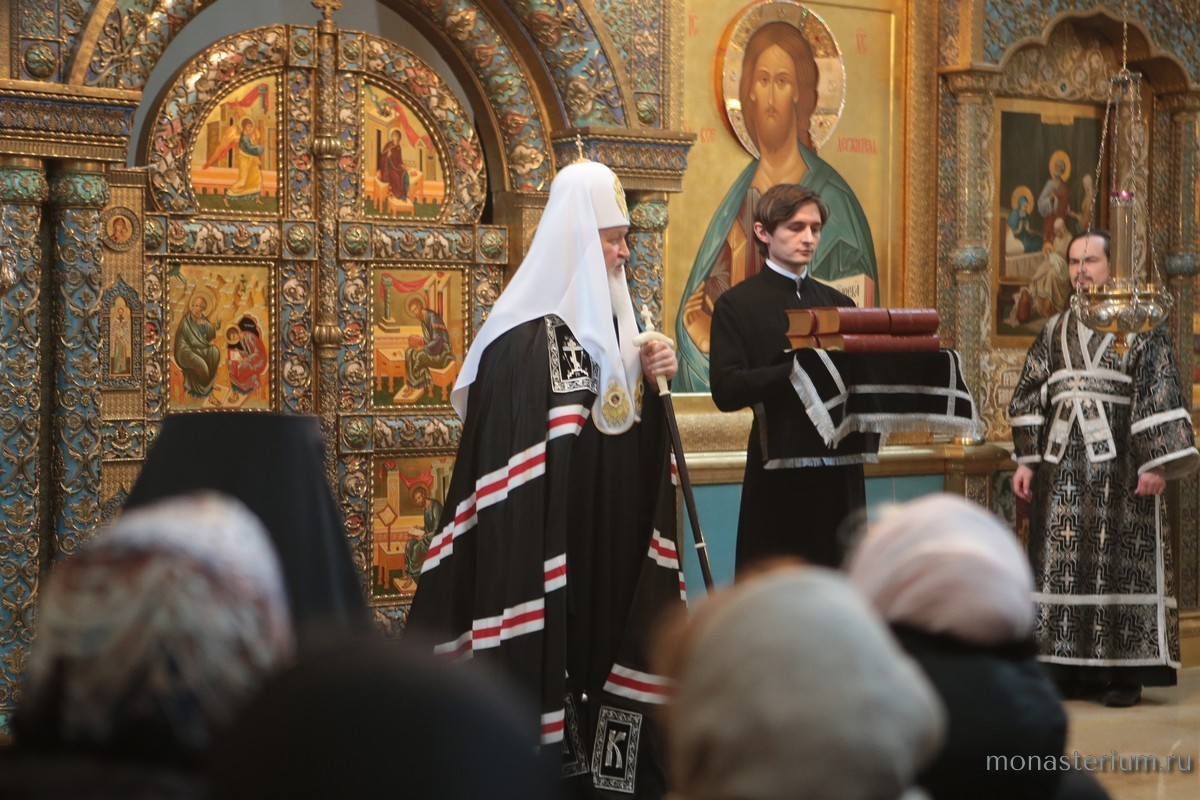 По сложившейся традиции на 1-й седмице Великого поста Святейший Патриарх Московский и всея Руси Кирилл посещает монастыри и храмы Москвы и Подмосковья и совершает в них ежедневные богослужения.