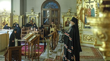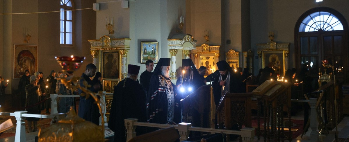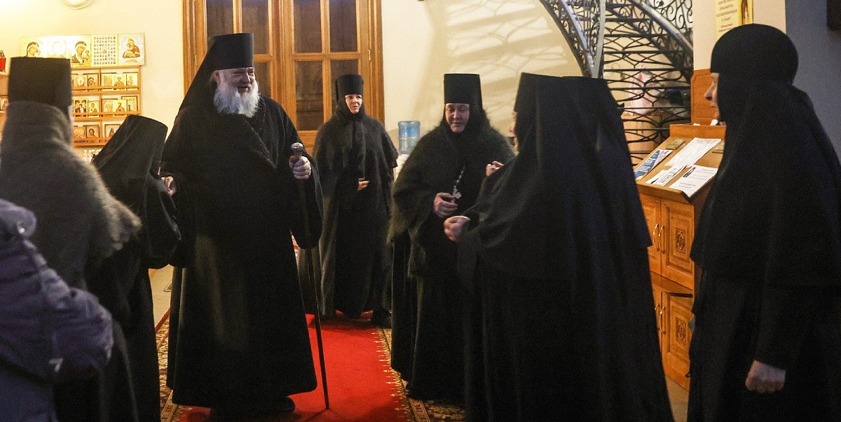 Вечером 27 февраля 2023 года, в понедельник первой седмицы Великого поста, по благословению Святейшего Патриарха Московского и всея Руси Кирилла епископ Видновский Тихон, викарий Святейшего Патриарха, наместник Екатерининского ставропигиального мужского монастыря совершил великое повечерие с чтением Великого покаянного канона прп. Андрея Критского в Кресто-Воздвиженском Иерусалимском ставропигиальном женском монастыре.