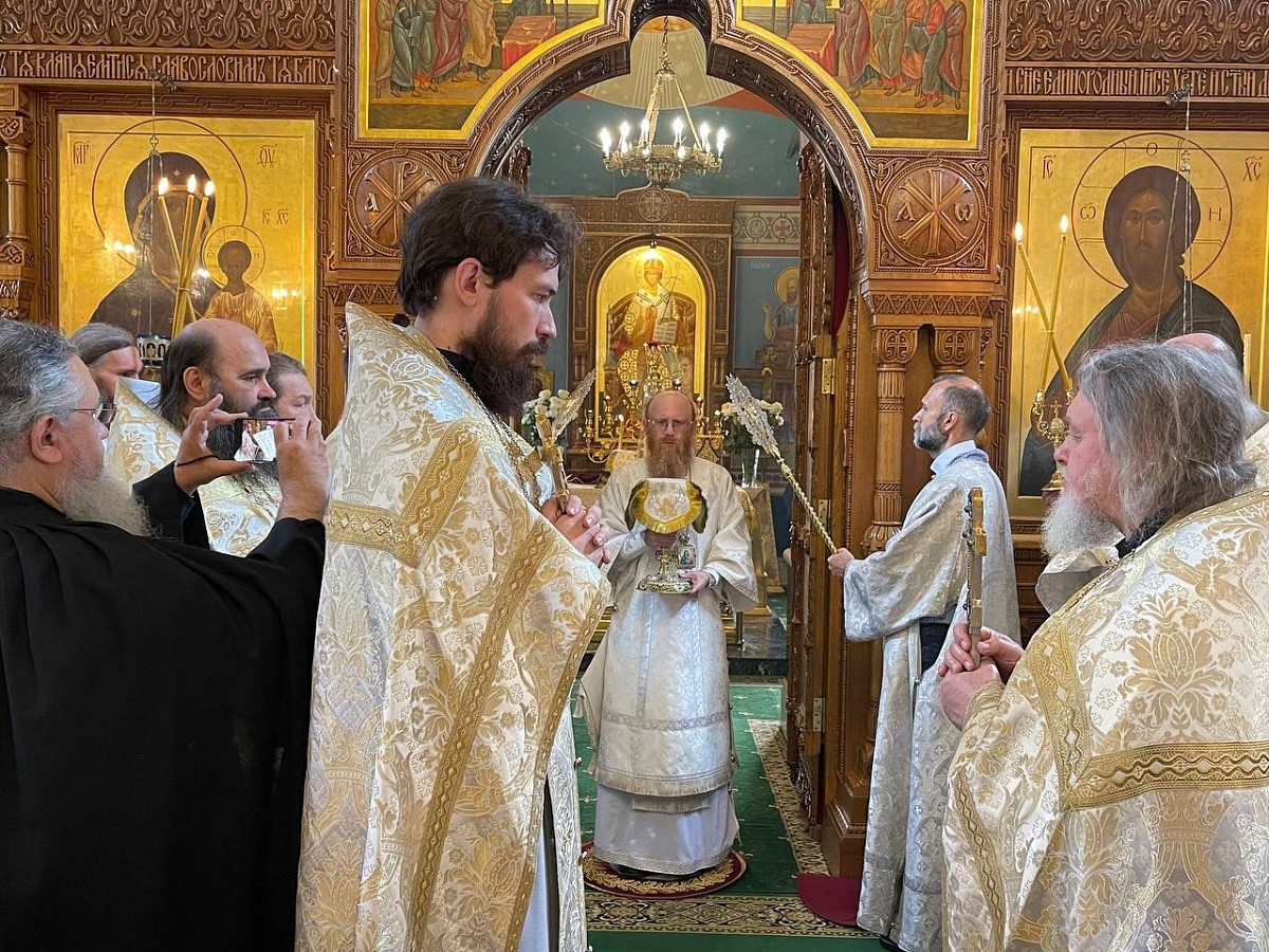 19 августа 2022 года, в праздник Преображения Господа Бога и Спаса нашего Иисуса Христа, наместник Введенского ставропигиального мужского монастыря Оптина пустынь епископ Можайский Иосиф возглавил Божественную литургию в Петропавловском храме Московского подворья Оптиной пустыни.