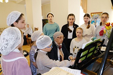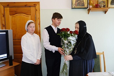 В подарок ребятам преподаватели сделали прощальную презентацию. После праздничной трапезы дети поблагодарили матушку игумению и учителей за заботу о них за все годы обучения, и подарили цветы. Игумения Олимпиада вручила им Святое Евангелие и сладкие подарки. Накануне преподаватель фортепиано вместе с ученицами показали небольшой концерт по итогам обучения.