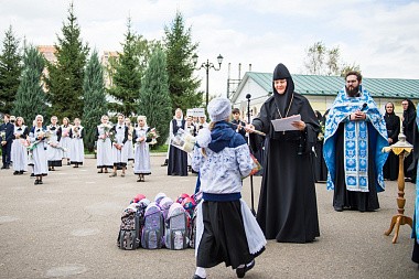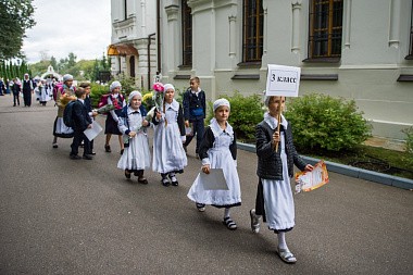 «Сердечно поздравляю вас с долгожданным праздником – Днем знаний! Первое сентября – теплый семейный праздник для всех нас. С особенной радостью мы встречаем самых маленьких учеников, которые только начинают свой школьный путь – наших первоклассников. В этом году их 15 человек! Приветствуем вас, дорогие ребята, особенно тепло молимся за вас и желаем успехов в учебе!