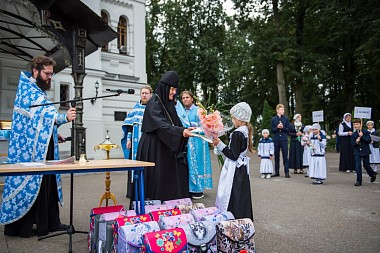 По окончании молебна родители выразили благодарность директору гимназии игумении Феофании (Мискиной) и всему коллективу православной гимназии, а ученики подарили им цветы.