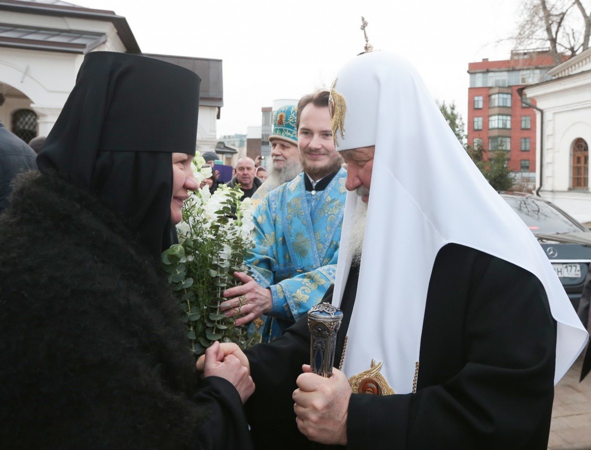 В этот день, Ваше Святейшество, мы паки и паки благодарим Вас за то, что Вы приехали в обитель, утешили и укрепили сердца насельниц, священнослужителей и всех присутствующих в храме. Мы молитвенно желаем Вам, чтобы Царица Небесная скоро слышала все Ваши прошения, во благо исполняла, а Первосвятитель Церкви Русской святитель Алексий, основатель сей святой обители, укреплял Вас в первосвятительских трудах, помогая Вам нести тяжелый Патриарший крест».