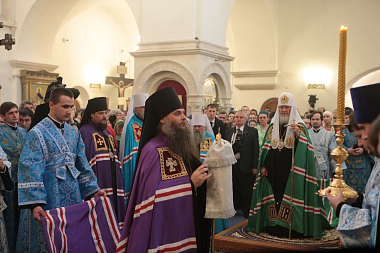 В дар Его Святейшеству матушка Иулиания преподнесла икону основателя монастыря – святителя Алексия, митрополита Московского.
