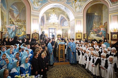Богослужебные песнопения исполнил хор Покровского монастыря под управлением О.Д. Золотухиной.