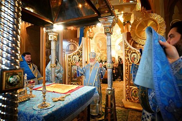На сугубой ектении были вознесены особые прошения, Предстоятель Русской Церкви прочитал молитву о Святой Руси.