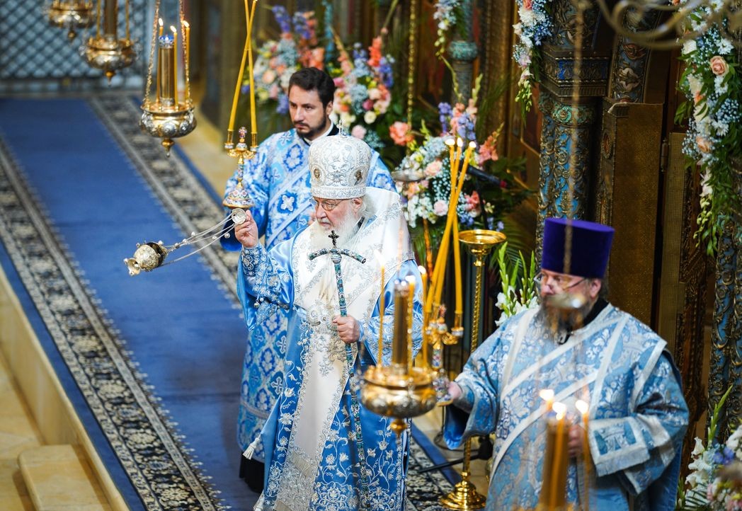 За Литургией Его Святейшеству сослужили: митрополит Крутицкий и Коломенский Павел, Патриарший наместник Московской митрополии; митрополит Воскресенский Дионисий, управляющий делами Московской Патриархии, первый викарий Патриарха Московского и всея Руси по г. Москве, наместник Новоспасского ставропигиального монастыря г. Москвы; митрополит Каширский Феогност, председатель Синодального отдела по монастырям и монашеству, наместник Донского ставропигиального монастыря г. Москвы; епископ Сергиево-Посадский и Дмитровский Фома, наместник Свято-Троицкой Сергиевой лавры; епископ Зеленоградский Савва, заместитель управляющего делами Московской Патриархии; епископ Петергофский Силуан, ректор Санкт-Петербургской духовной академии; протопресвитер Владимир Диваков, секретарь Патриарха Московского и всея Руси по г. Москве; архимандрит Алексий (Туриков), личный секретарь Святейшего Патриарха Кирилла; игумен Дионисий (Шлёнов), наместник Андреевского ставропигиального монастыря г. Москвы, руководитель Аспирантуры Московской духовной академии; протоиерей Георгий Преображенский, настоятель храма Казанской иконы Божией Матери в пос. Вырица Гатчинского района Ленинградской области; игумен Адриан (Пашин), секретарь Ученого совета Московской духовной академии; духовенство Москвы и Санкт-Петербургской митрополии.