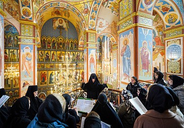 Богослужебные песнопения исполнил хор Зачатьевского монастыря под управлением инокини Емилии (Цвировой).