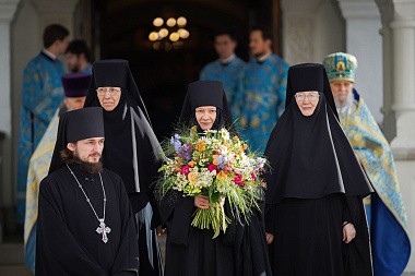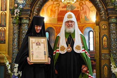 Настоятельнице монастыря игумении Иулиании Святейший Владыка вручил крест и Патриаршую грамоту – во внимание к трудам по украшению возглавляемой ею обители. Каждой из насельниц монастыря Святейший Патриарх передал сборник своих проповедей за 2021 год, изданный Свято-Троицкой Сергиевой лаврой.